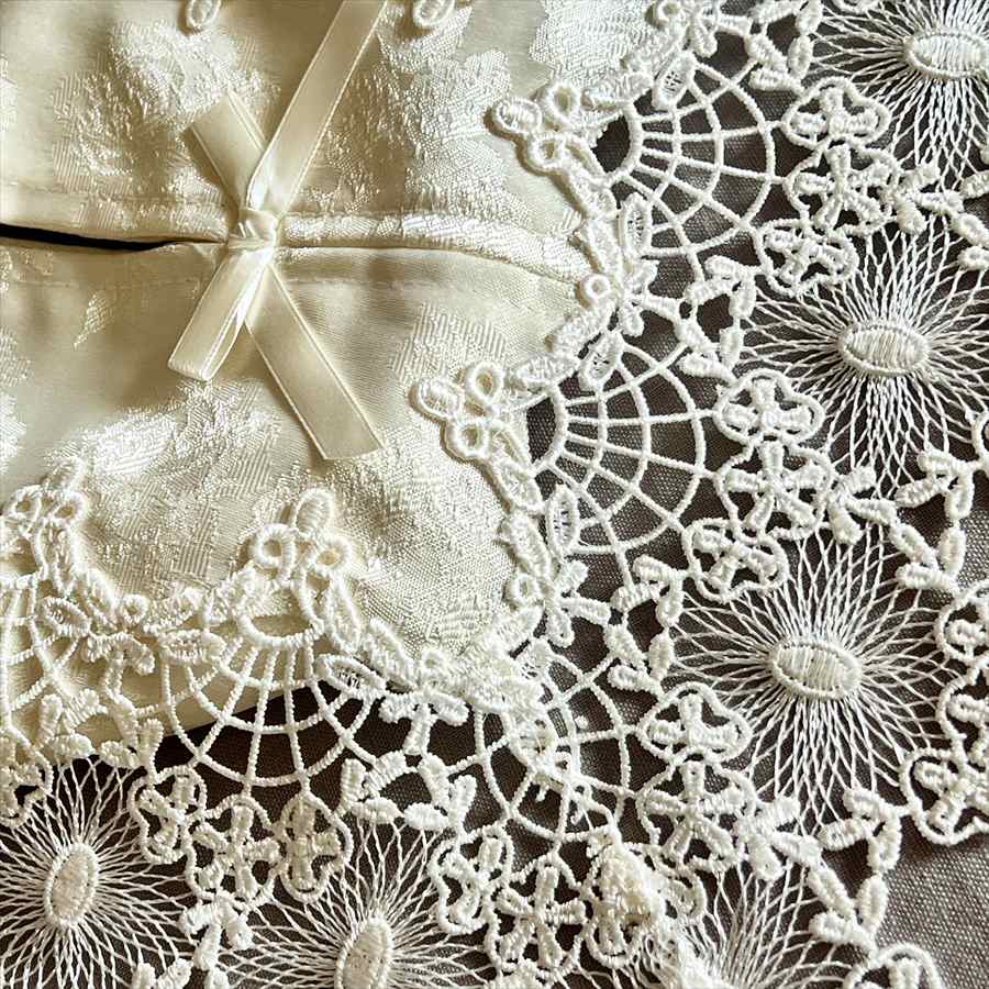 一番人気の定番商品 繊細で豪華なデザインのギュピールレースのシリーズです。 高級感有りながら価格がリーズナブルなのも人気の理由です。 色はオリーブグリーンとベージュの2色をご用意しました。 様々なサイズとアイテムを取り揃えています。 |