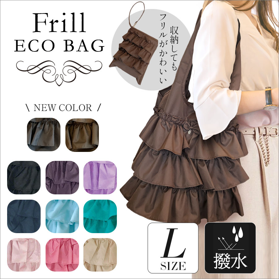 エコバック 3段フリルエコバッグL ストラップ付 軽量 撥水 折りたたみ コンパクト 高レビュー 学校行事 通勤 冠婚葬祭 サブバック