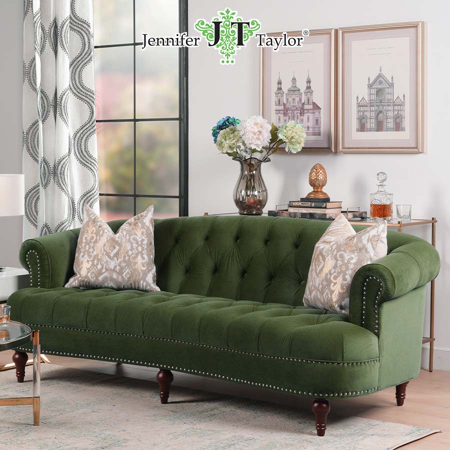 ジェニファーテイラー 3人掛け ソファ La Rosa 幅215cm ベロア グリーン 36002SF-V036
