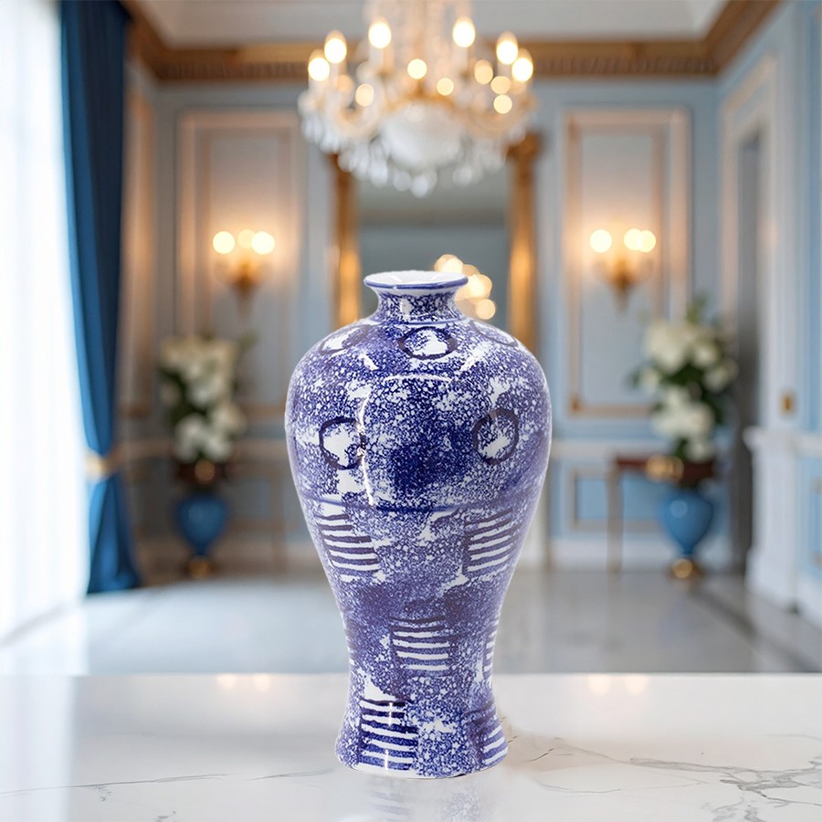 ブルーとホワイトのシノワズリデザインが魅力的な花器です。 トラディショナルなインテリアのご家庭に最適です。 リビングの装飾として個性的でエレガントなアクセントになります。 |