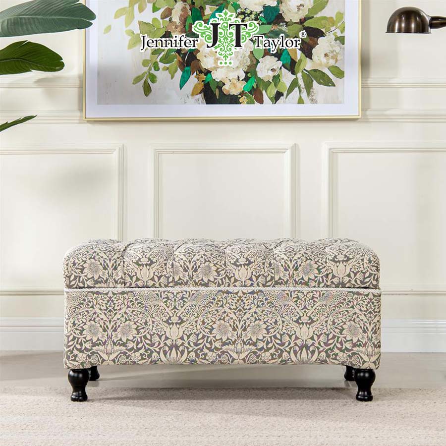 ジェニファーテイラー 収納付きベンチ いちご泥棒 グレー Strawberry Thief GR 33032SB-VI04