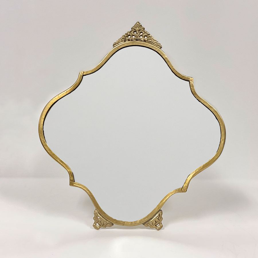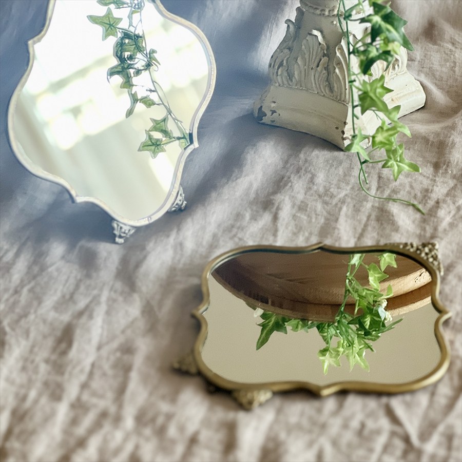 | 商品説明 | クラシカルなフォルムと装飾が美しい、真鍮製のスタンドミラー。 しっかりとした重量感と優雅なデザインは、まるでヨーロッパのアンティークミラーのような雰囲気を漂わせます。 シルバーとゴールドの2色展開で、ドレッサーやリビング、玄関など、置くだけで空間を華やかに演出します。 ・ドレッサーに置いて、メイク用の鏡として。 ・玄関やリビングに飾って、空間を広く明るく見せるアクセントに。 ・小物や花瓶と組み合わせたディスプレイ用アイテムとして。 <インドの職人によるハンドメイド製品について> ・サイズや形状、装飾の風合いに個体差がございます。 ・アンティーク調の仕上げを施しているため、小さな傷・色ムラ・黒ずみ・仕上げの粗さなどが見られる場合がありますが、製品の特性としてご了承願います。 ・真鍮素材は経年変化により酸化し、色味が深まります。専用クロスや乾いた布で軽く拭くと輝きが戻ります。 ・ガラスには製造過程で微細な気泡や筋が入る場合があります。 |