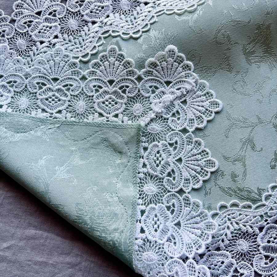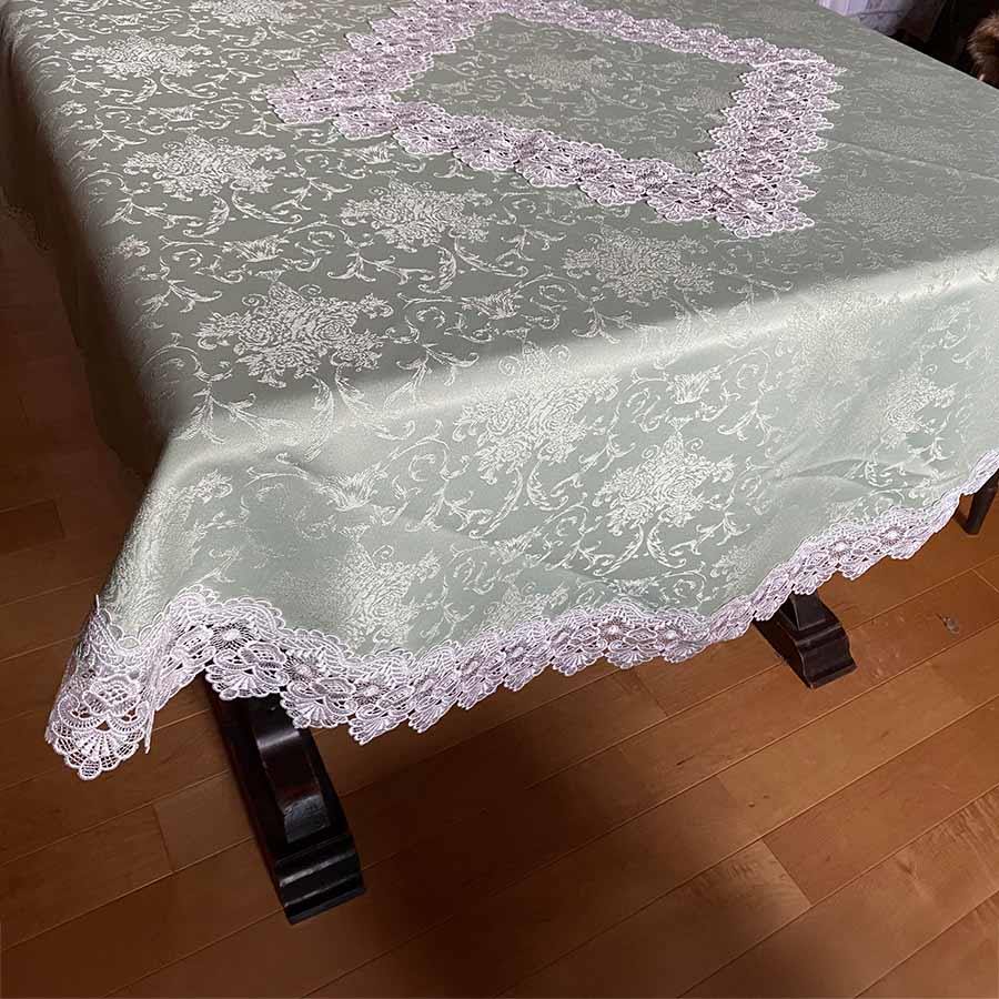 | 商品説明 | 淡いシャイニーリケン色(淡いブルーグリーン)が優雅でいて爽やかな雰囲気を醸しだすテーブルセンターシリーズ。 縁を彩るギュピールレースがより美しく引き立てます。 アンティーク家具にもモダン家具にもなじむオールマイティーなシリーズです。 撥水加工がされています。 |