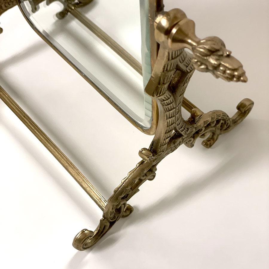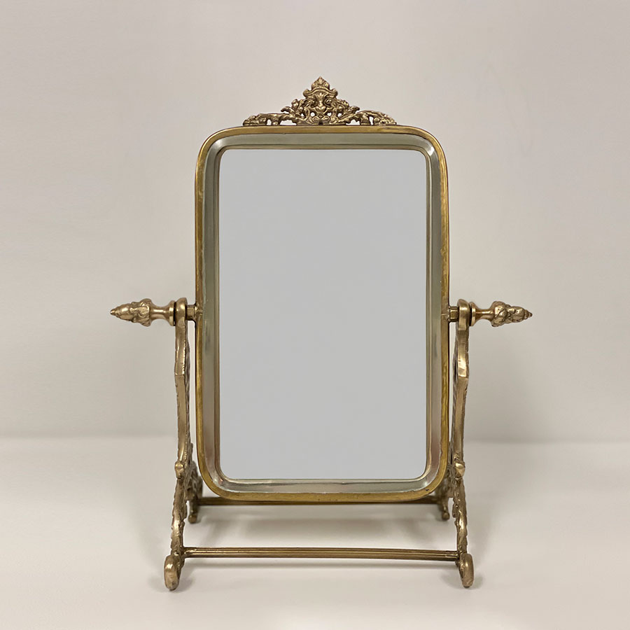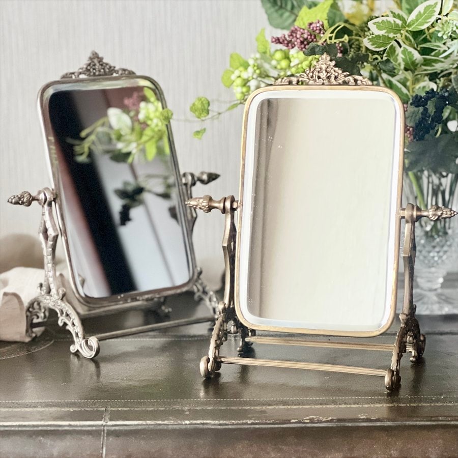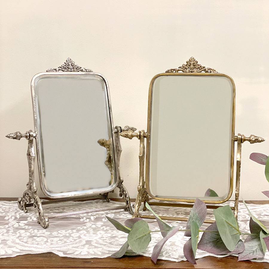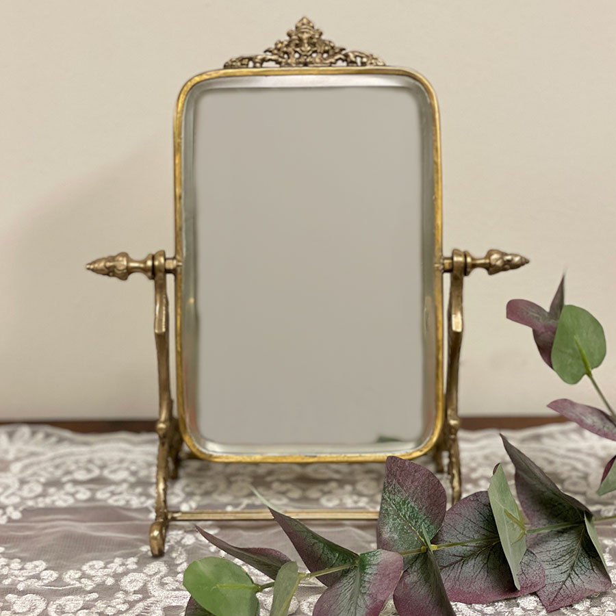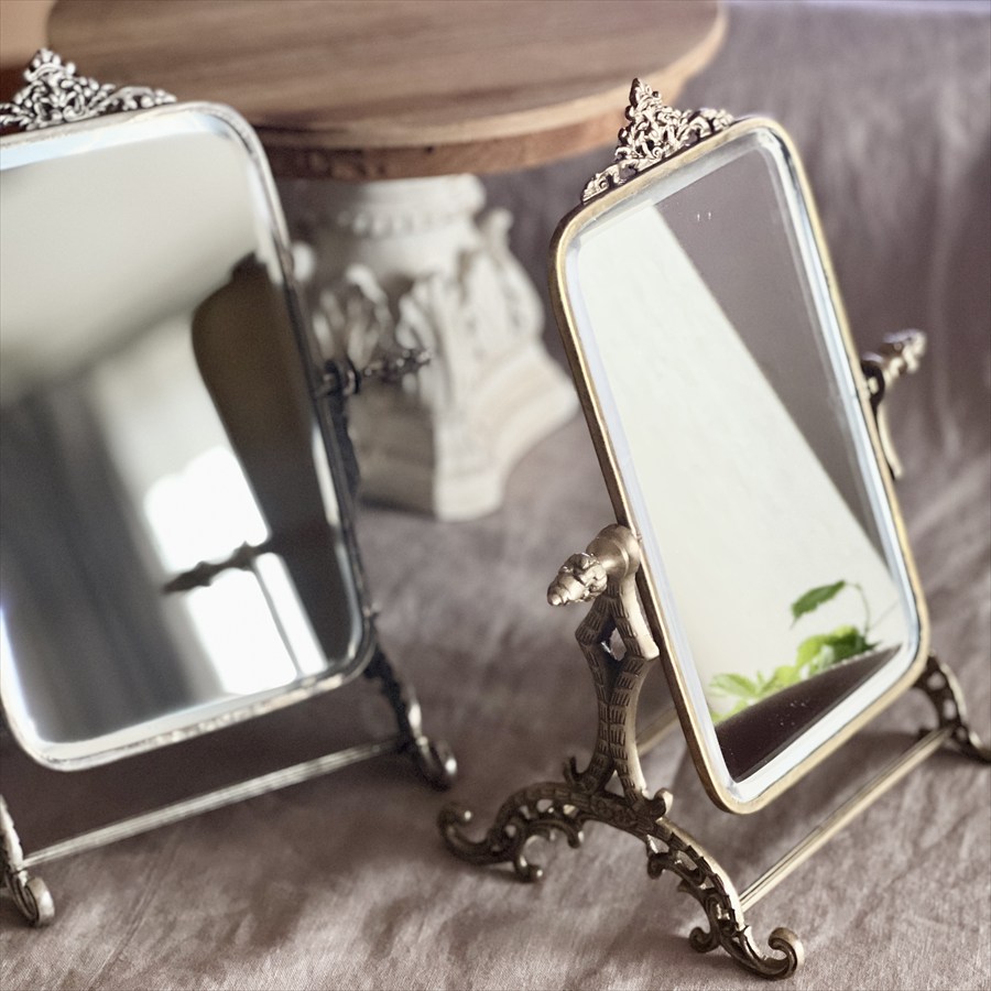 | 商品説明 | クラシカルな装飾が施された、真鍮製のアンティーク調スタンドミラー。 上品な輝きと重厚感を兼ね備えた真鍮フレームが、ヨーロッパのアンティーク雑貨を思わせる優雅な佇まいです。 角度調整が可能で、ドレッサーやデスク上でのメイクや身だしなみチェックに最適。 置くだけでインテリアのアクセントになる華やかさが魅力です。 ・メイクや身だしなみチェック用の卓上ミラーとして。 ・ドレッサーや玄関に置くアクセントミラーとして。 ・ショップやサロンのインテリア什器として。 ・小物やアクセサリーと一緒にディスプレイして高級感を演出。 <インドの職人によるハンドメイド製品について> ・サイズや形状、装飾の風合いに個体差がございます。 ・アンティーク調の仕上げを施しているため、小さな傷・色ムラ・黒ずみ・仕上げの粗さなどが見られる場合がありますが、製品の特性としてご了承願います。 ・真鍮素材は経年変化により酸化し、色味が深まります。専用クロスや乾いた布で軽く拭くと輝きが戻ります。 ・ガラスには製造過程で微細な気泡や筋が入る場合があります。 |
