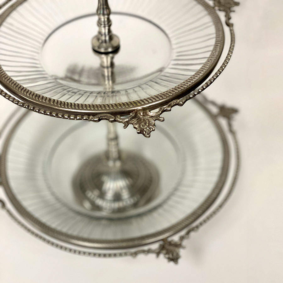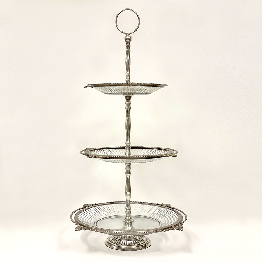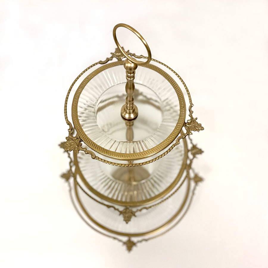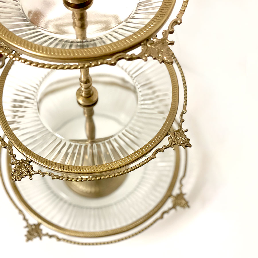 クラシカルな真鍮フレームとガラスプレートを組み合わせた、豪華な3段ディスプレイスタンド。 アフタヌーンティーやパーティーでのスイーツ・フルーツの盛り付けはもちろん、アクセサリーや雑貨をディスプレイする什器としても映える逸品です。 ゴールドとシルバーの2色展開で、上質なインテリア空間を演出します。 ・アフタヌーンティー用のケーキスタンドとして。 ・アクセサリーや雑貨を並べる店舗什器として。 ・ウェディングやイベントのテーブル装飾に。 ・季節のデコレーションやインテリアディスプレイに。 <インドの職人によるハンドメイド製品について> ・サイズや形状、装飾の風合いに個体差がございます。 ・アンティーク調の仕上げを施しているため、小さな傷・色ムラ・黒ずみ・仕上げの粗さなどが見られる場合がありますが、製品の特性としてご了承願います。 ・真鍮素材は経年変化により酸化し、色味が深まります。専用クロスや乾いた布で軽く拭くと輝きが戻ります。 ・ガラスには製造過程で微細な気泡や筋が入る場合があります。 |