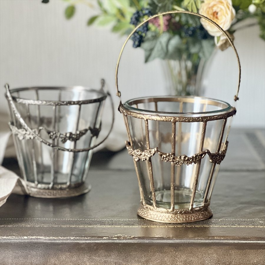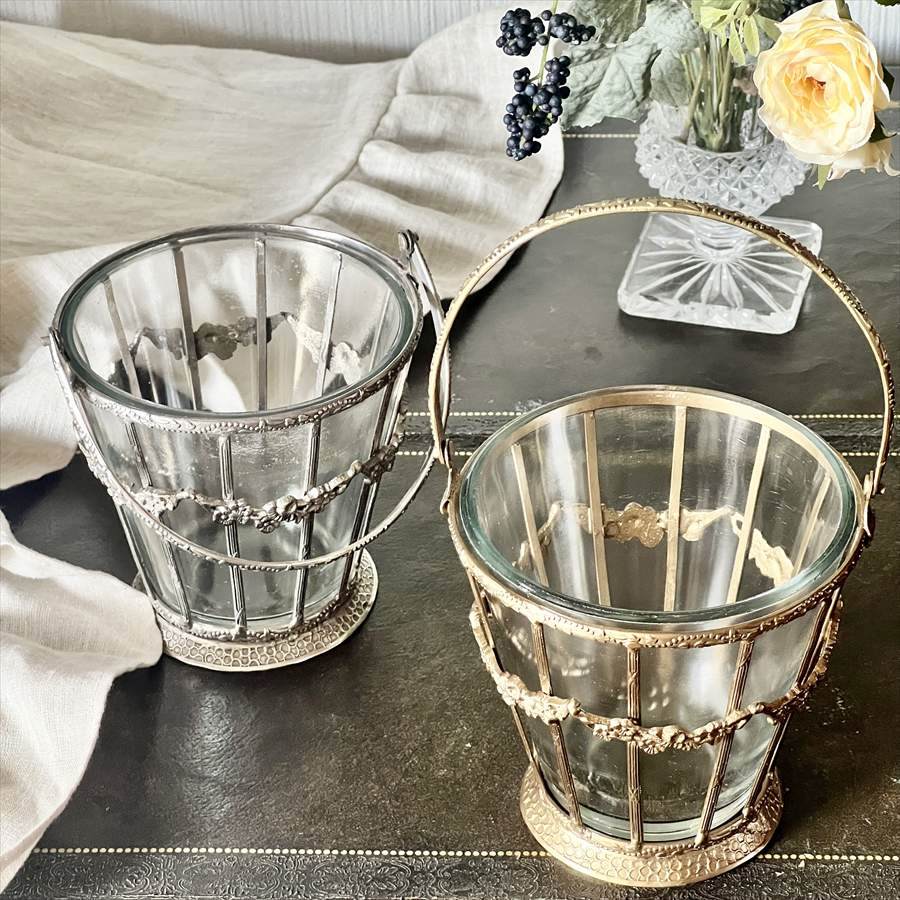 ガラスバスケット 真鍮×ガラス ゴールド シルバー