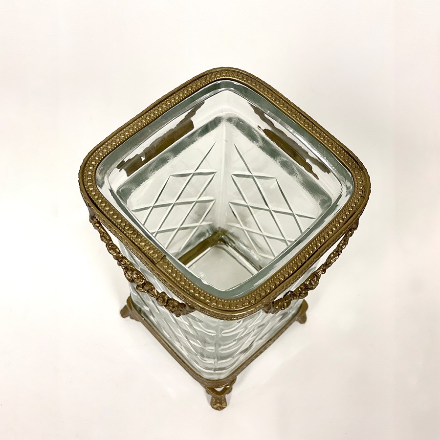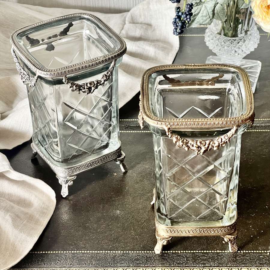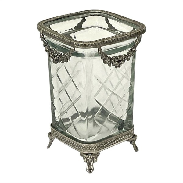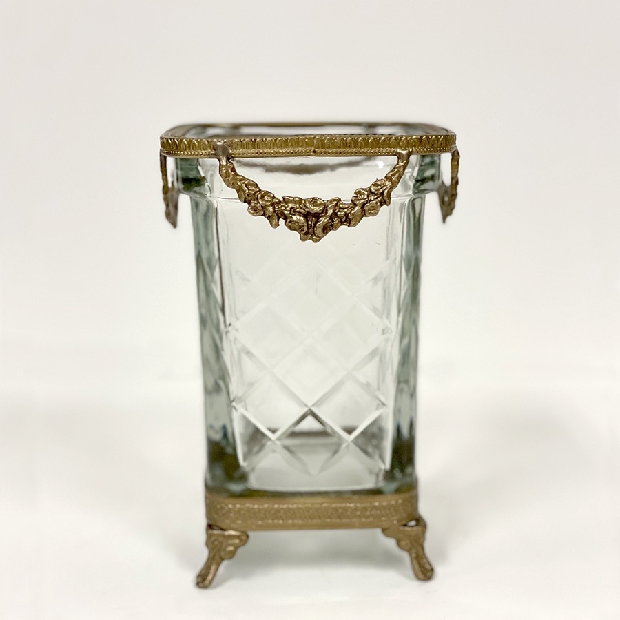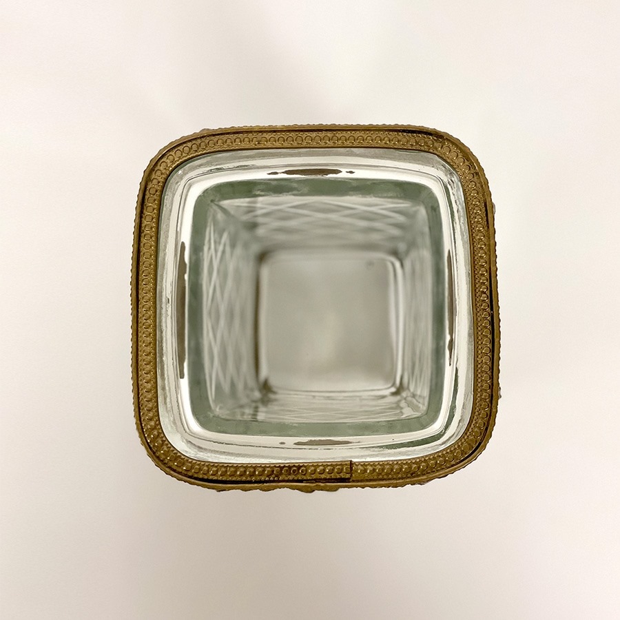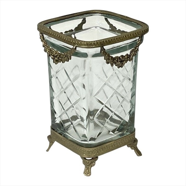 重厚感のある真鍮フレームと、カットガラスが美しく調和したスクエア型コンテナ。 上部には繊細なガーランド装飾があしらわれ、クラシカルでエレガントな雰囲気を演出します。 脚付きのデザインで高さがあり、立体的な存在感が魅力。アンティーク調のインテリアにしっくりと馴染みます。 ・ペン立てやメイクブラシスタンドに デスクやドレッサーの上に置いて、ステーショナリーやブラシをすっきり収納。 ・フラワーベースとして 高さを活かして短めのブーケやドライフラワーを活けるのもおすすめです。 ・カトラリースタンドに カフェ風の演出として、ナイフやフォークを入れてテーブルを華やかに。 ・玄関で鍵入れや小物の収納に 細々としたものをまとめて、インテリア性も兼ねた実用的なオブジェに。 <インドの職人によるハンドメイド製品について> ・サイズや形状、装飾の風合いに個体差がございます。 ・アンティーク調の仕上げを施しているため、小さな傷・色ムラ・黒ずみ・仕上げの粗さなどが見られる場合がありますが、製品の特性としてご了承願います。 ・真鍮素材は経年変化により酸化し、色味が深まります。専用クロスや乾いた布で軽く拭くと輝きが戻ります。 ・ガラスには製造過程で微細な気泡や筋が入る場合があります。 |
