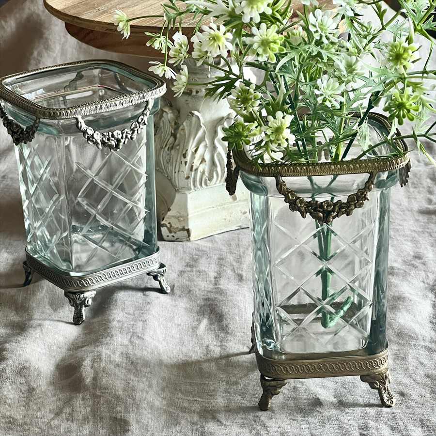 【半額セール】ガラス花瓶 ガラス 真鍮 ゴールド シルバー