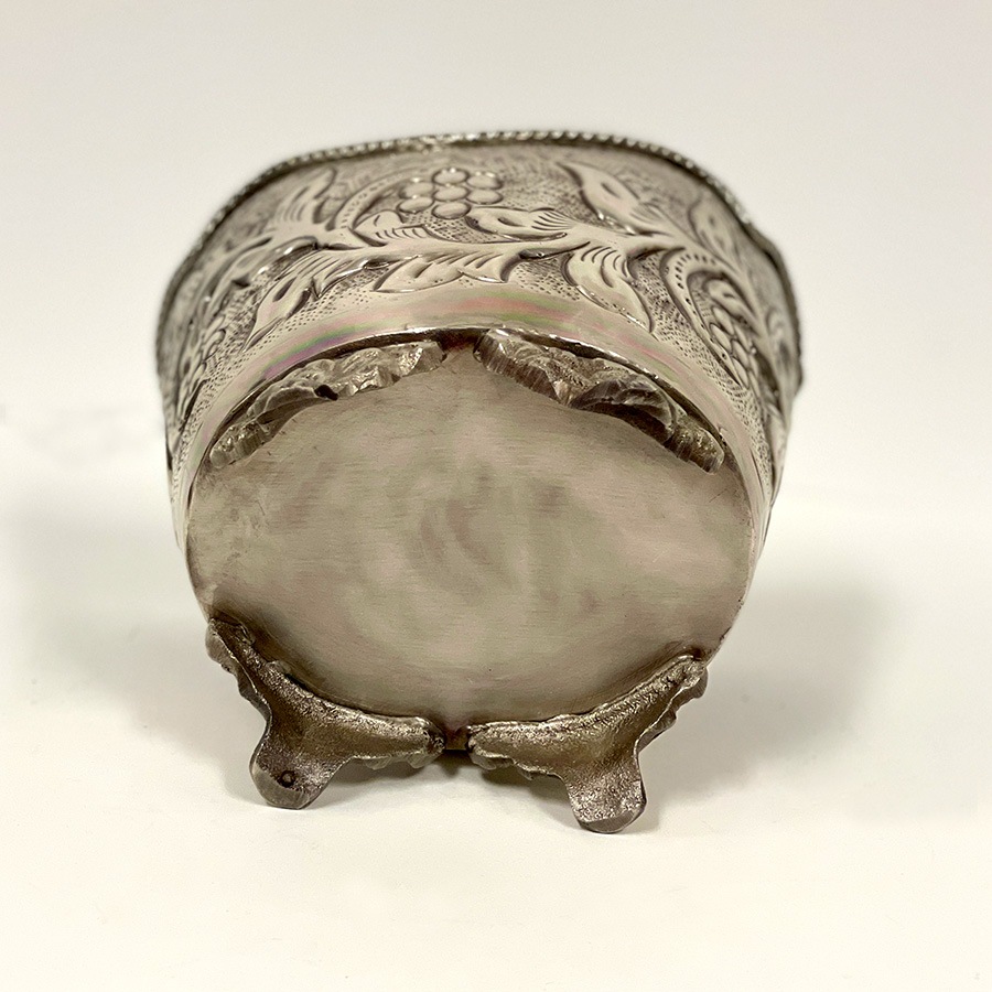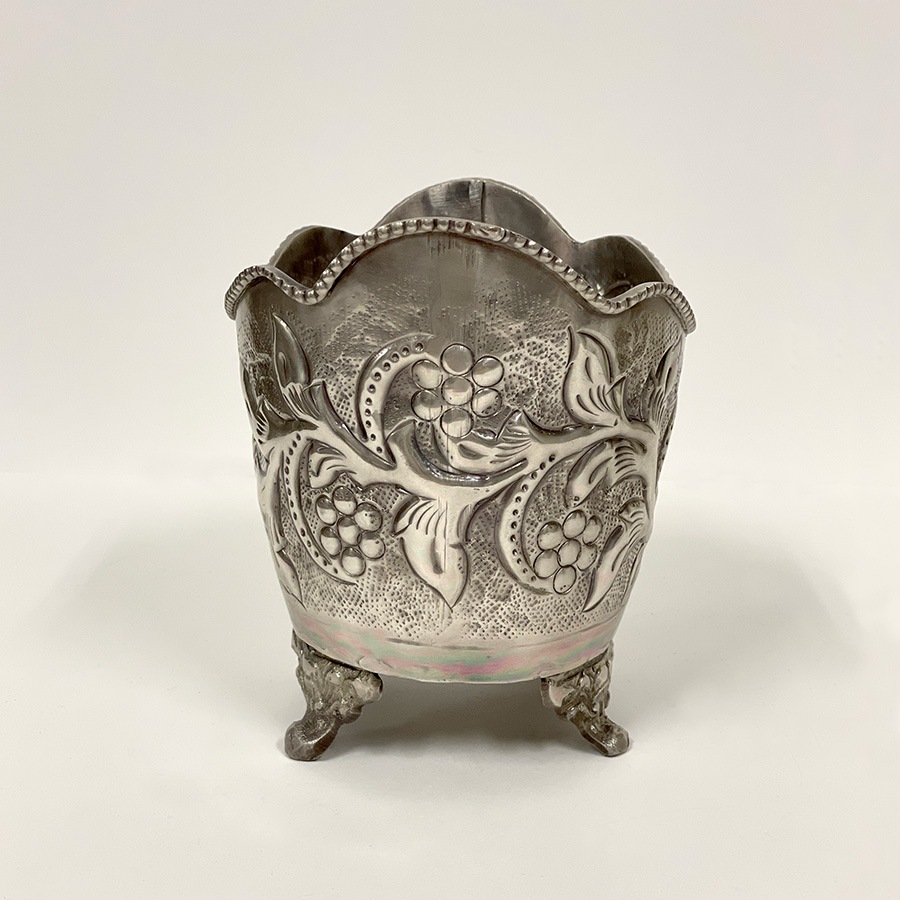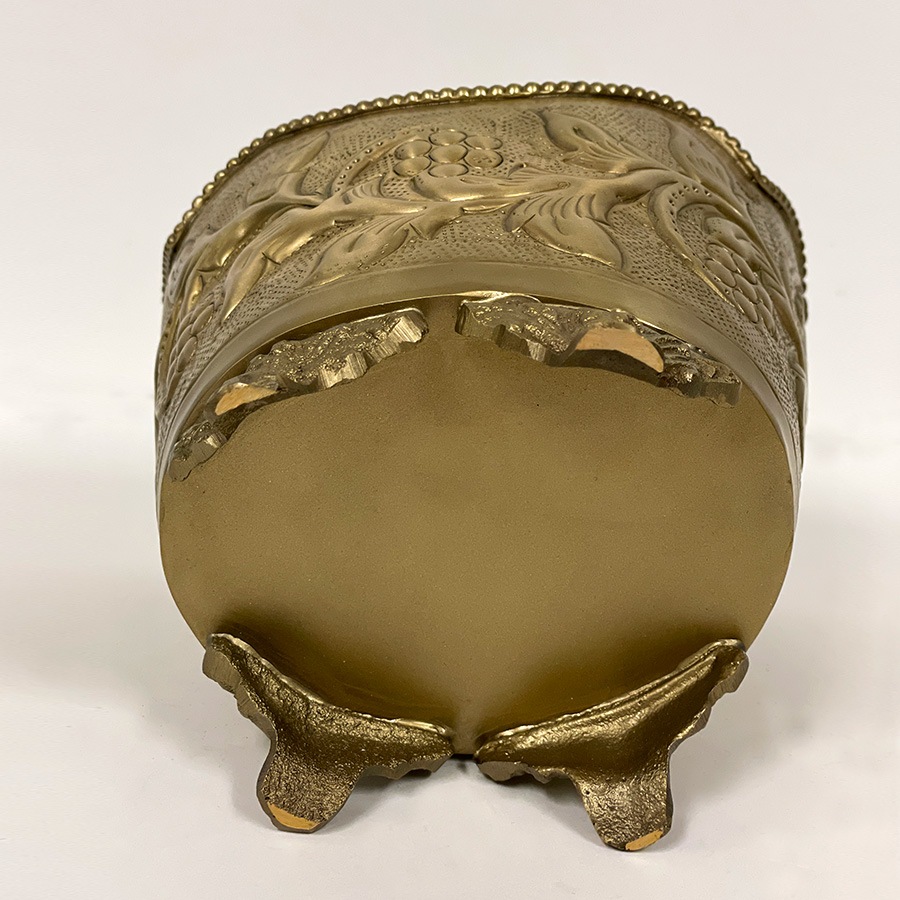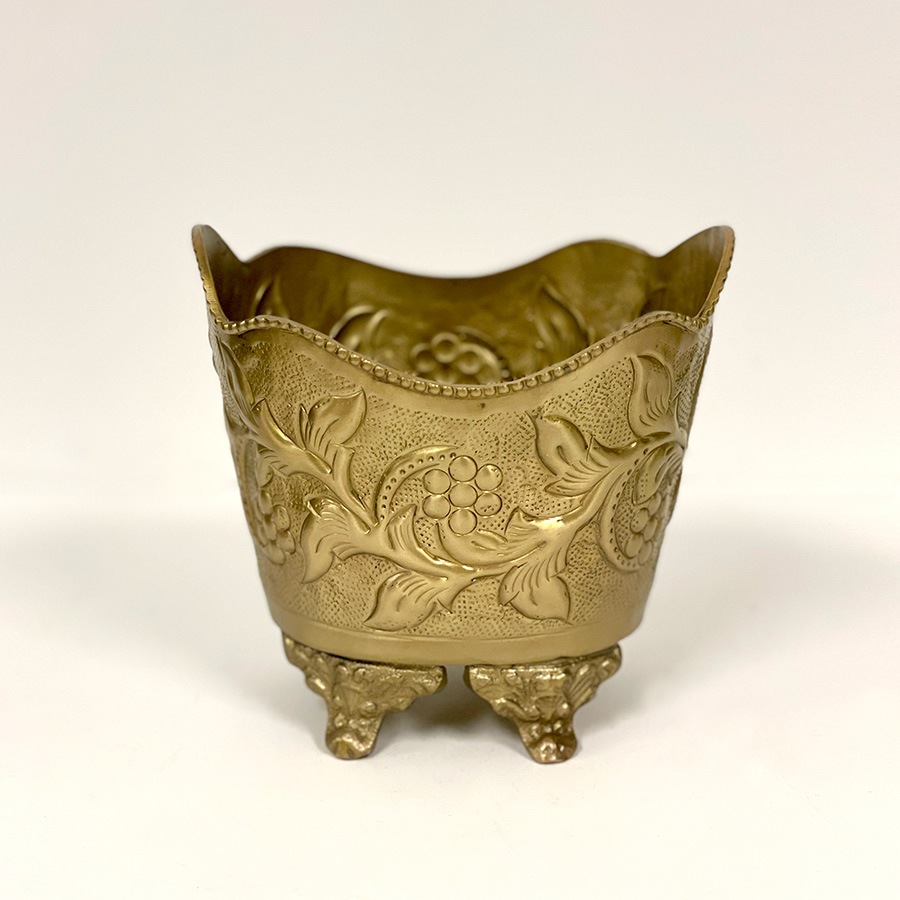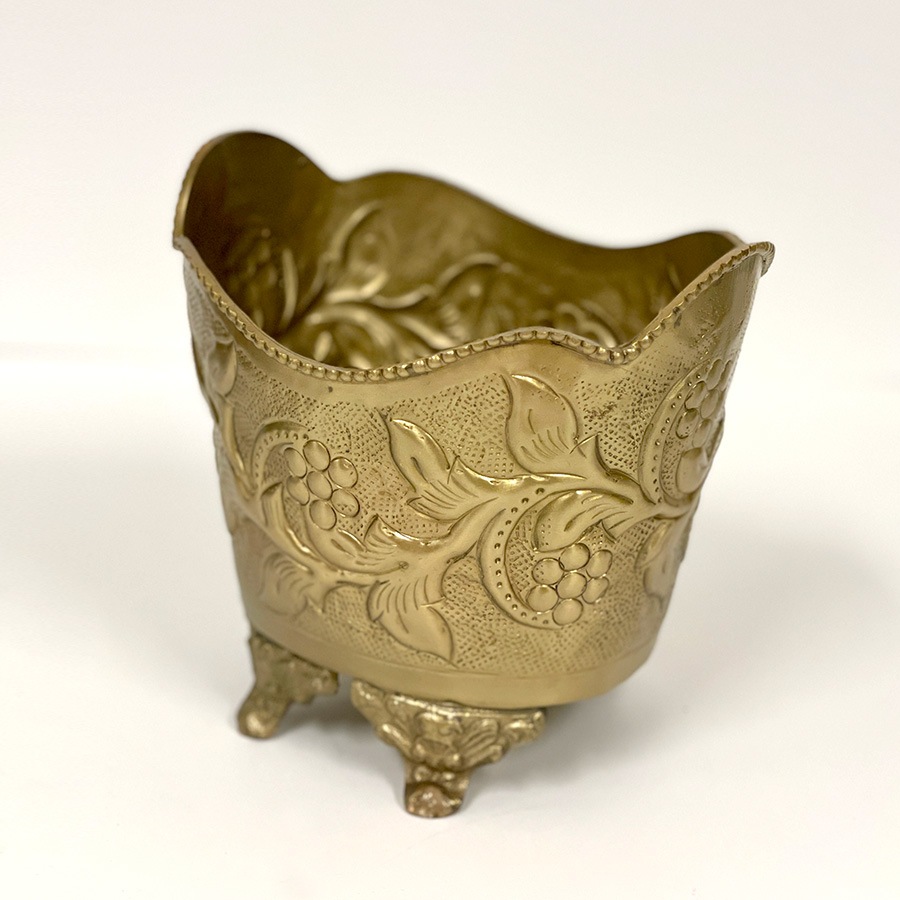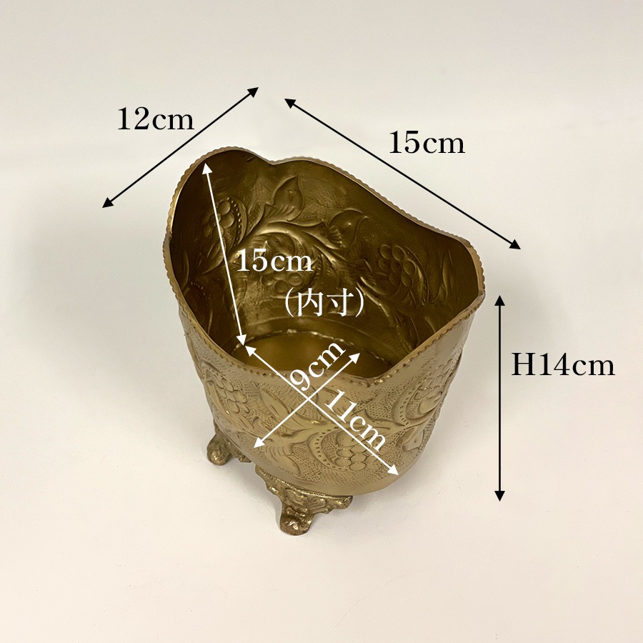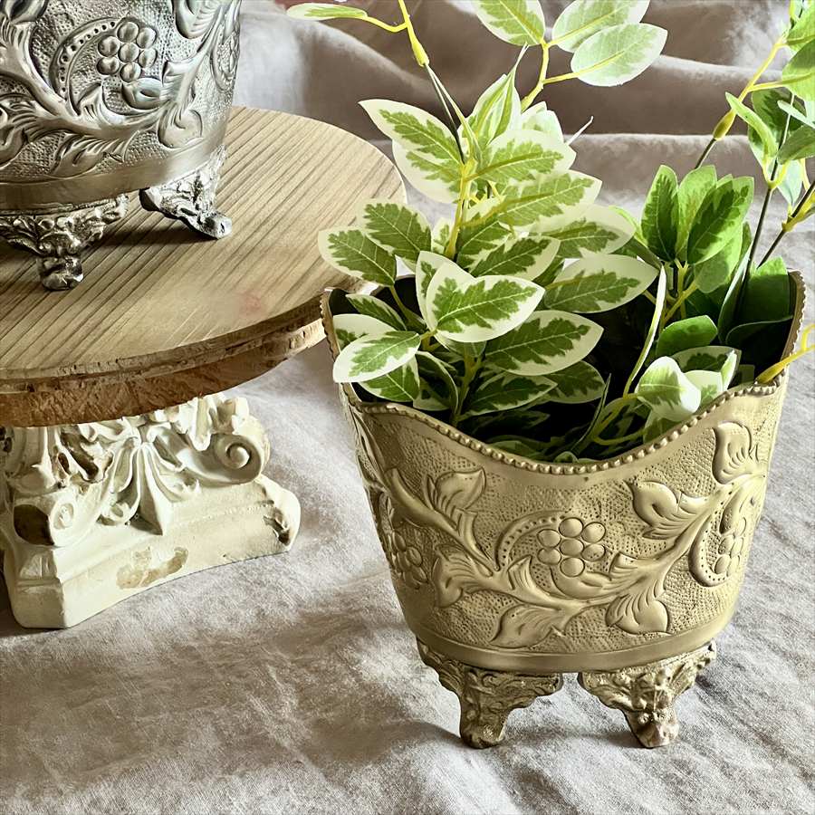 | 商品説明 | 繊細な浮き彫り装飾と、クラシカルなフォルムが魅力の真鍮製ポット。 立体的な葡萄と葉のモチーフが施された本体には、アンティーク調の風合いが漂い、インテリアに上質なアクセントを添えてくれます。 波打つようなスカラップ型の縁取りと、獅子の爪を思わせる3本脚のデザインが重厚感を演出。 カラーは高級感のあるゴールドと、上品で落ち着いたシルバーの2色展開。 クラシックやヨーロピアンテイストのお部屋にはもちろん、和洋ミックススタイルにも馴染み、使うほどに味わいを増す真鍮ならではの質感も魅力。自宅用としてはもちろん、ギフトとしてもおすすめの一品です。 ・ドライフラワーやフェイクグリーンを飾る花器として ・リビングや玄関先で小物入れやアクセサリーケース、ポプリポットとして ・洗面所のダストボックスとして <インドの職人によるハンドメイド製品について> ・サイズや形状、装飾の風合いに個体差がございます。 ・アンティーク調の仕上げを施しているため、小さな傷・色ムラ・黒ずみ・仕上げの粗さなどが見られる場合がありますが、製品の特性としてご了承願います。 ・真鍮素材は経年変化により酸化し、色味が深まります。専用クロスや乾いた布で軽く拭くと輝きが戻ります。 ・ガラスには製造過程で微細な気泡や筋が入る場合があります。 |