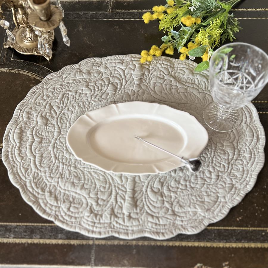 | 商品説明 | インド製の上質なプレースマット。100%コットンを贅沢に使用し、立体感のあるキルティング刺繍が施された楕円形デザインです。サイズは約36×46cmで、日常の食卓から特別なティータイムまで幅広く活躍します。柔らかく、温もりのある素材感がテーブルコーディネートをより華やかに引き立てます。 カラーは上品なホワイト、ニュアンスカラーのブルーグレーとライトグレーの3色展開。お好みや季節に合わせてコーディネートを楽しめます。 ・食卓を華やかに:お皿やカトラリーを置くだけでおしゃれな雰囲気に。 ・ ティータイムの演出に:カップやスイーツを並べて優雅な時間を。 ・インテリアマットとして:花瓶や小物置きに使っても素敵。 ・色違いで揃えて:3色を組み合わせて季節感やテーマを演出。 <お手入れ方法と注意点> 手洗いまたはネット使用での弱水流洗濯がおすすめ。漂白剤は使用不可。 陰干しで自然乾燥。直射日光は色あせの原因になる場合があります。 アイロンは低温であて布を使用。 天然素材のため、洗濯後に多少の縮みやしわが生じることがあります。 ハンドメイド製品のため、ステッチや形に個体差がある場合があります。 |