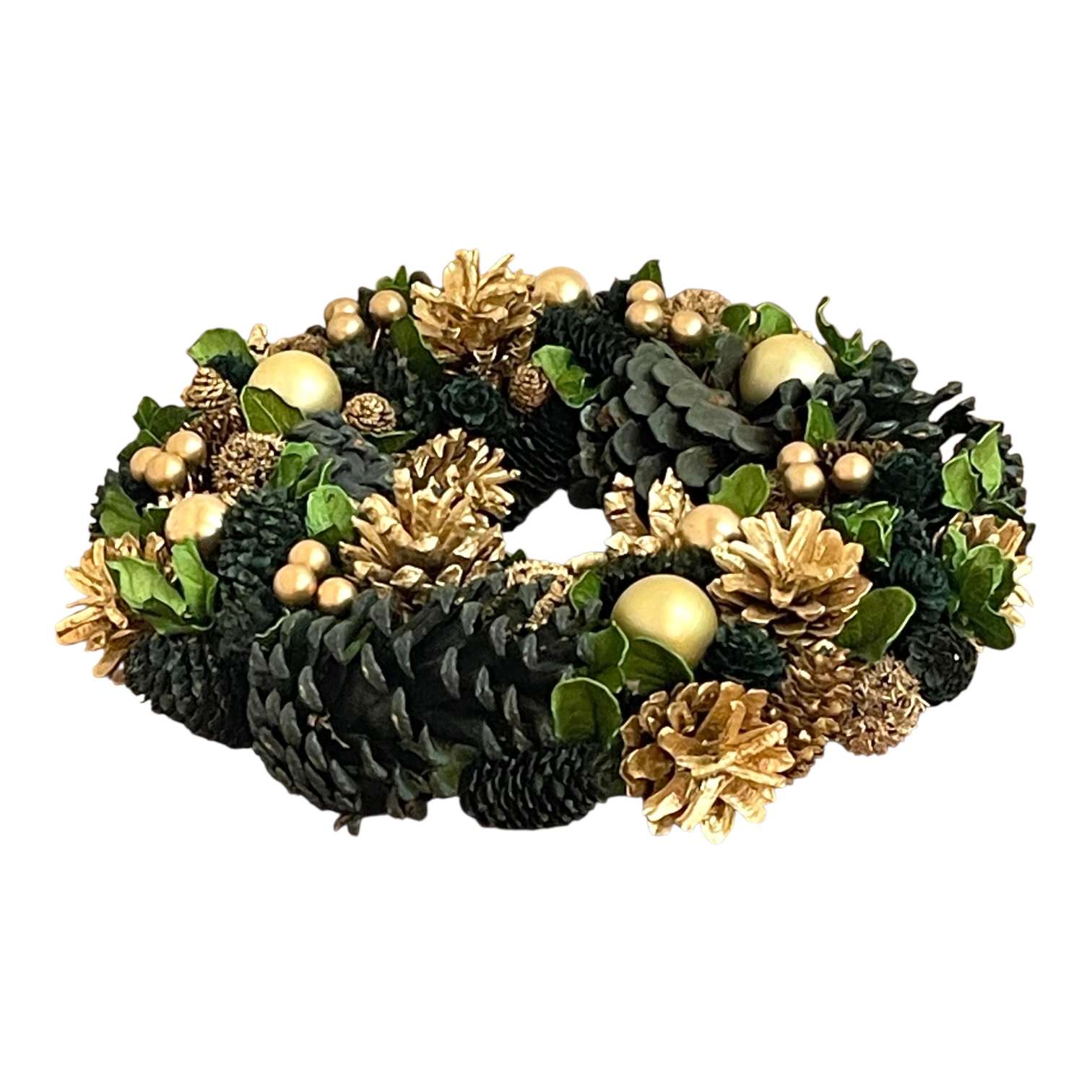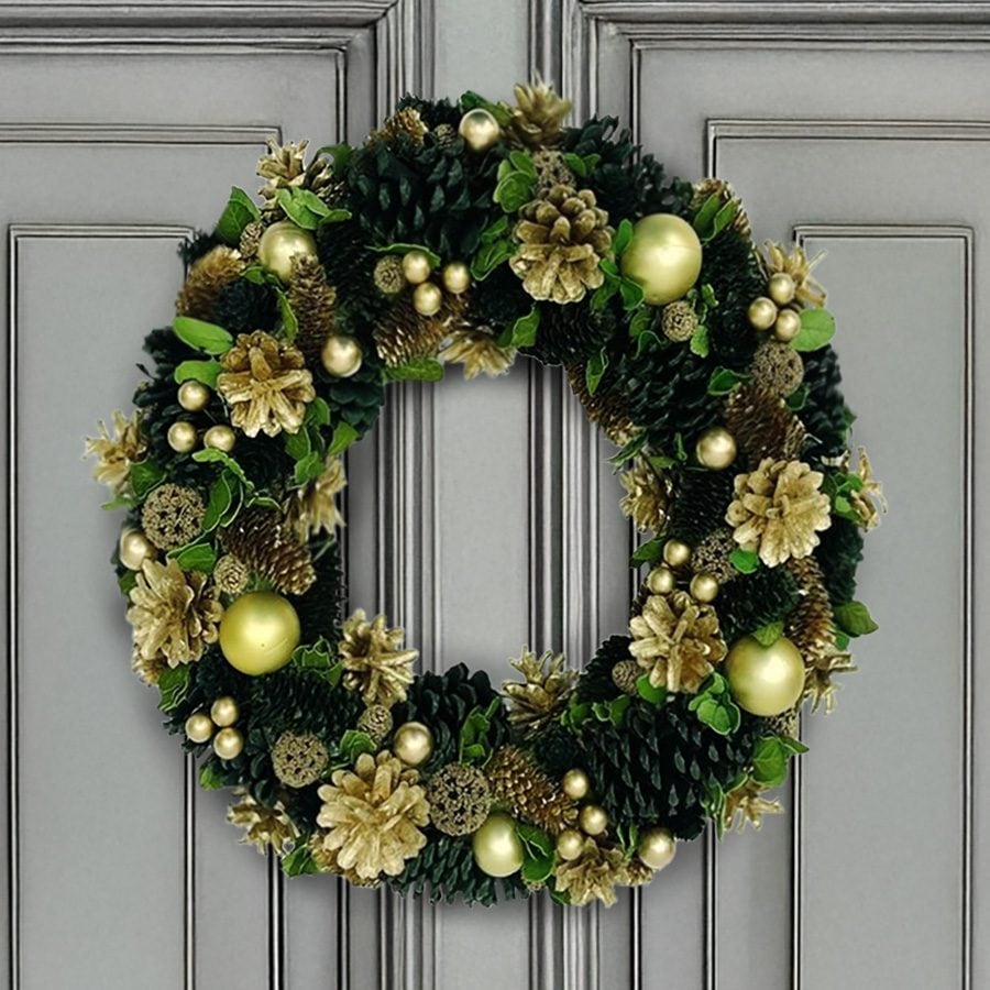シックで華やかな印象を与えるゴールド×グリーンのクリスマスリースです。 濃いグリーンの松ぼっくりに、上品なゴールドカラーの実やオーナメント、木の実をあしらい、落ち着いた中にも華やかさが感じられるデザインに仕上げられています。 大人のクリスマスデコレーションにぴったりで、玄関やリビングに飾るだけで空間がぐっとエレガントな雰囲気に。 ナチュラル素材を使用しており、温かみのある風合いも魅力。季節感を楽しみながら、上品なインテリアコーディネートを演出できます。 ・本商品はサンプルをもとにご紹介しております。実際の商品は若干の仕様変更や色味の違いが生じる場合がございます。 |