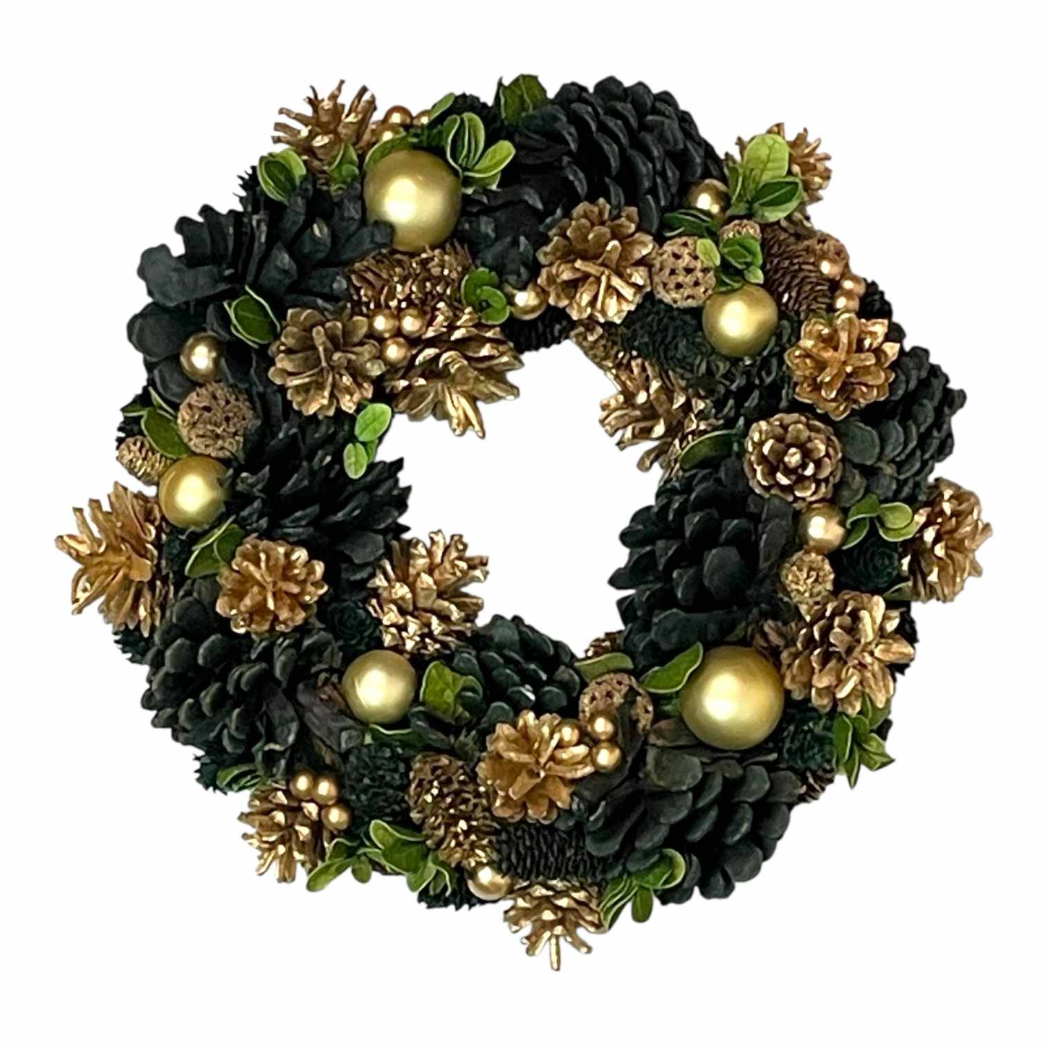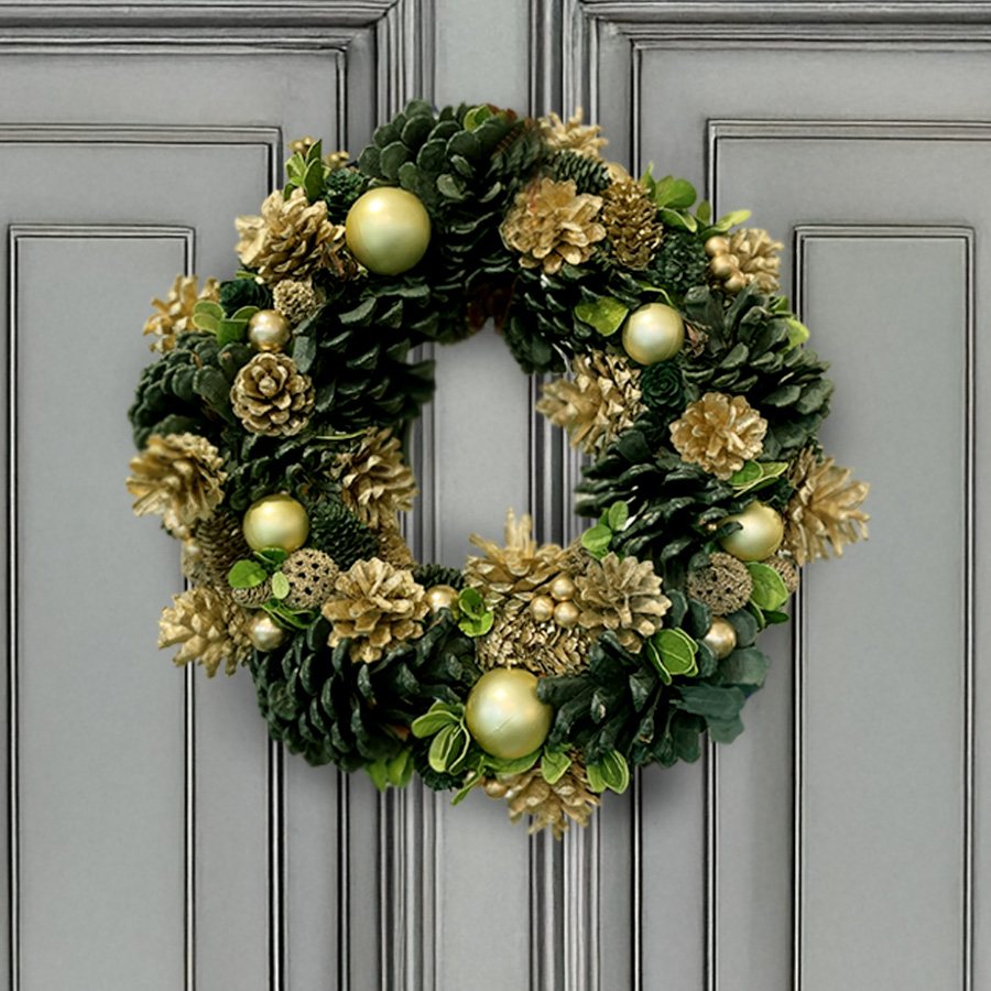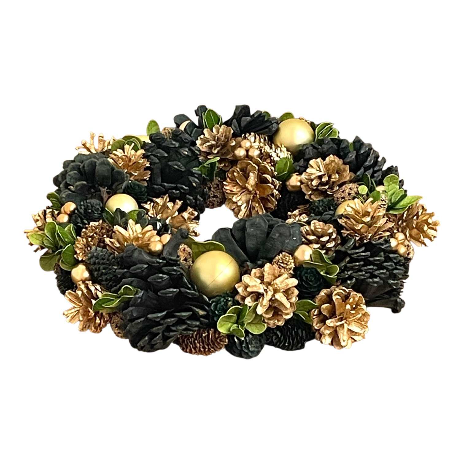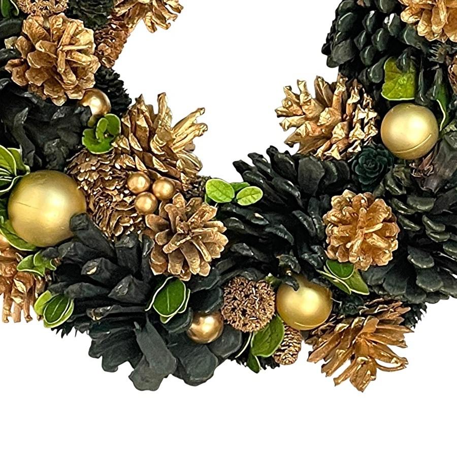 シックで華やかな印象を与えるゴールド×グリーンのクリスマスリースです。 濃いグリーンの松ぼっくりに、上品なゴールドカラーの実やオーナメント、木の実をあしらい、落ち着いた中にも華やかさが感じられるデザインに仕上げられています。 大人のクリスマスデコレーションにぴったりで、玄関やリビングに飾るだけで空間がぐっとエレガントな雰囲気に。 ナチュラル素材を使用しており、温かみのある風合いも魅力。季節感を楽しみながら、上品なインテリアコーディネートを演出できます。 ・本商品はサンプルをもとにご紹介しております。実際の商品は若干の仕様変更や色味の違いが生じる場合がございます。 |
