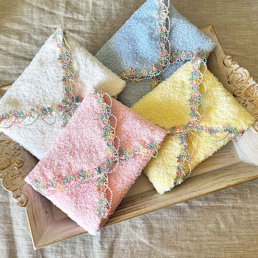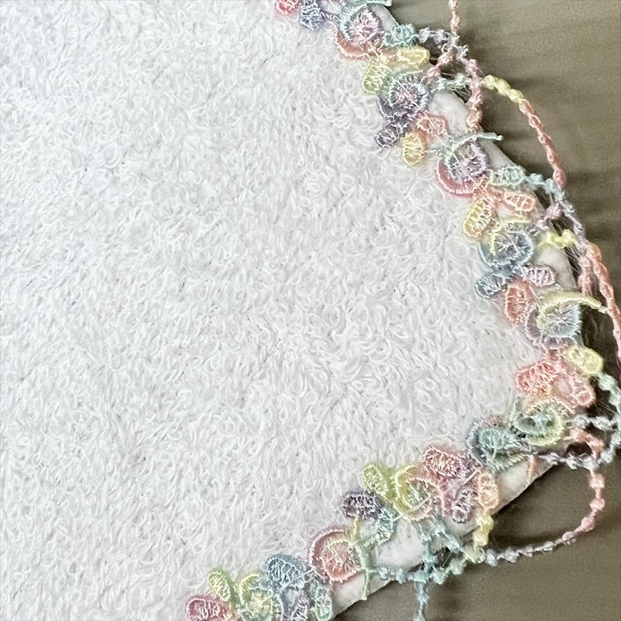 | 商品説明 | 優しいパステルカラーの虹色レースが可愛い、柔らかい触り心地で吸水性の良い日本製のタオルハンカチです。大切な方へのプチギフトにもおすすめです。 |