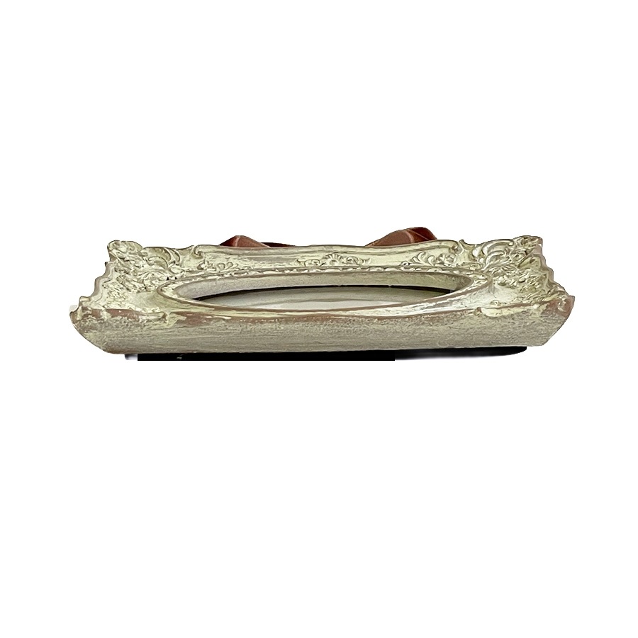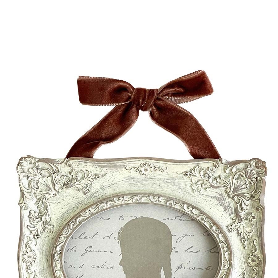クラシックな装飾が美しい、アンティーク調のミニフレームです。 繊細なレリーフが施されたフレームに、上品なベルベット風リボンを組み合わせ、壁面をエレガントに飾るアクセントとして活躍します。 写真やポストカード、シルエットアートなど小さなアートを引き立てるコンパクトサイズ。玄関・リビング・寝室など、どんな空間にも上品な雰囲気を添えます。 ・リボン付きでそのまま飾れるデザイン性 ・小さなアートを美しく見せる額装効果 ・プチギフトにも人気のサイズ感 ・複数並べてギャラリー風コーディネートにも 【注意点】 ・アンティーク調仕上げのため、色ムラ・小傷風の加工がある場合があります。デザイン上の特徴としてご了承ください。 ・樹脂製フレームのため強い衝撃を避けてください。 ・リボン部分は素材の特性上、摩擦で毛羽立つことがあります。強く引っ張らないようご注意ください。 ・壁掛けの際は、安定したフックやピンをご使用ください。 ・湿気や直射日光の当たる場所でのご使用は変色の原因となる場合があります。 |