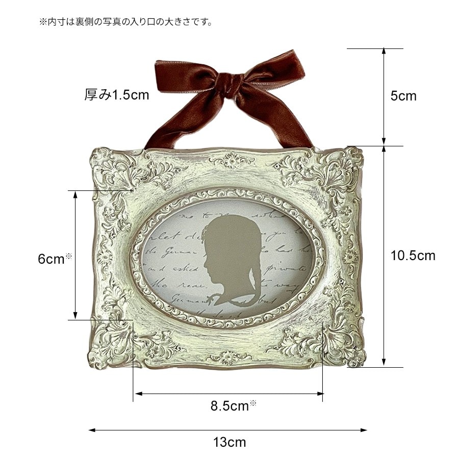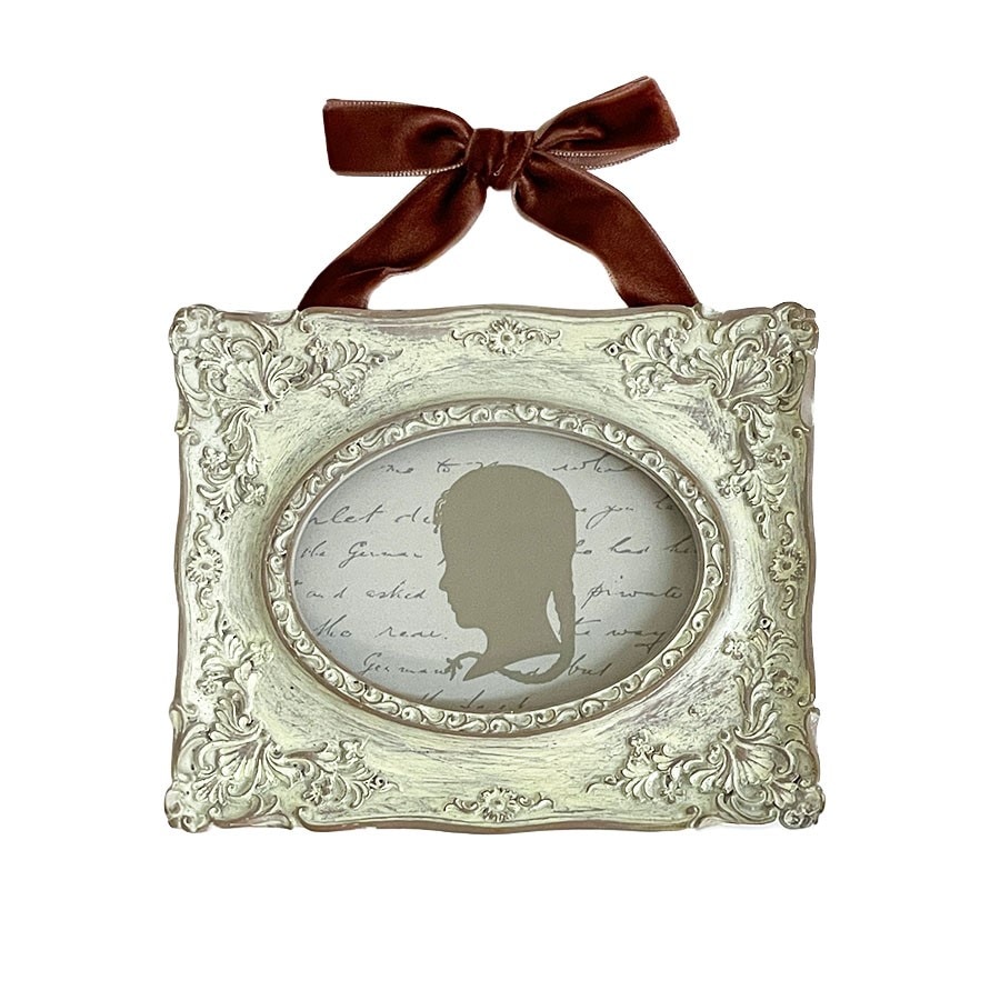 クラシックな装飾が美しい、アンティーク調のミニフレームです。 繊細なレリーフが施されたフレームに、上品なベルベット風リボンを組み合わせ、壁面をエレガントに飾るアクセントとして活躍します。 写真やポストカード、シルエットアートなど小さなアートを引き立てるコンパクトサイズ。玄関・リビング・寝室など、どんな空間にも上品な雰囲気を添えます。 ・リボン付きでそのまま飾れるデザイン性 ・小さなアートを美しく見せる額装効果 ・プチギフトにも人気のサイズ感 ・複数並べてギャラリー風コーディネートにも 【注意点】 ・アンティーク調仕上げのため、色ムラ・小傷風の加工がある場合があります。デザイン上の特徴としてご了承ください。 ・樹脂製フレームのため強い衝撃を避けてください。 ・リボン部分は素材の特性上、摩擦で毛羽立つことがあります。強く引っ張らないようご注意ください。 ・壁掛けの際は、安定したフックやピンをご使用ください。 ・湿気や直射日光の当たる場所でのご使用は変色の原因となる場合があります。 |