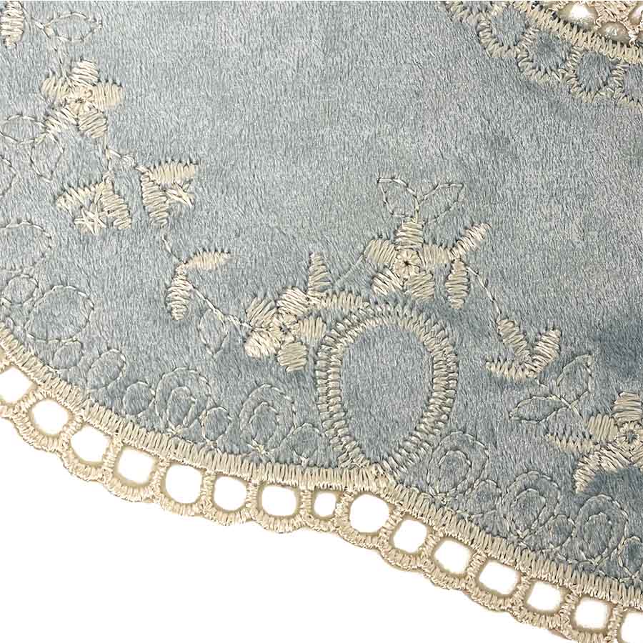 | 商品説明 | 上品な光沢を放つベロア生地に、繊細なレース装飾をあしらったエレガントなテーブルセンター。 ベロア特有のなめらかな質感と、角度によって表情を変える深みのある色合いが、テーブルコーディネートに豊かな奥行きをもたらします。 中央にはクラシックなモチーフのレースを配し、周囲にも細やかな装飾を施すことで、華やかさと品の良さを両立。 ダイニングテーブルやサイドボード、コンソールの上に敷くだけで、空間をワンランク上のクラシックスタイルへと引き上げてくれます。 カラーは、落ち着いた印象のブルー、ピンク、オフホワイト、ライトブラウンの4色展開。 インテリアの雰囲気や季節に合わせてお選びいただけます。 【注意点】 ・ベロア生地の特性上、毛並みの向きや光の当たり方により色の濃淡が異なって見える場合があります ・レース部分は繊細なため、引っ掛かりや摩擦にご注意ください ・洗濯機の使用は避け、汚れた場合はやさしく手洗いしてください ・直射日光の当たる場所での長時間使用は、色あせの原因となる場合があります |