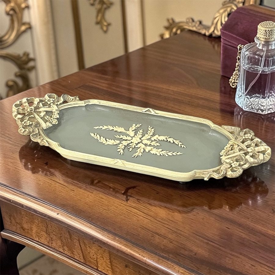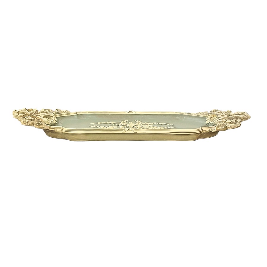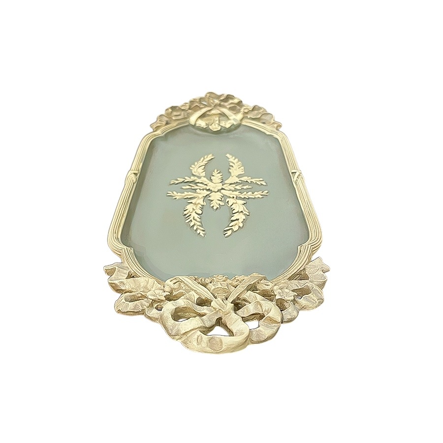 クラシカルな装飾が美しいアンティーク調デザインのオーバルトレイです。 繊細なレリーフと上品なゴールドカラーが、置くだけでエレガントな雰囲気を演出します。 アクセサリーや時計、小物を置くトレイとしてはもちろん、玄関で鍵や小物をまとめるトレイとしても便利。 ドレッサーやチェストの上のディスプレイにもおすすめで、ヨーロピアンやシャビーシックなインテリアにも美しく調和します。 ■ご注意 ・本商品はアンティーク風の仕上げのため、塗装のムラやかすれ、小さなキズのような加工が見られる場合があります。商品の風合いとしてお楽しみください。 ・製造工程上、小さな気泡、色むら、細かな凹凸などが見られる場合があります。 ・サイズや色味には若干の個体差がある場合があります。 ・ディスプレイや撮影環境により、実際の色味と多少異なる場合があります。 ・平らで安定した場所でご使用ください。 ・装飾品のため、強い衝撃や重量物を置く用途には適しておりません。 |